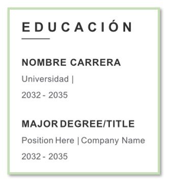 El formato deberia ser breve, el titulo o nombre de la carrera que estudiaste, la universidad y los años de estudio.