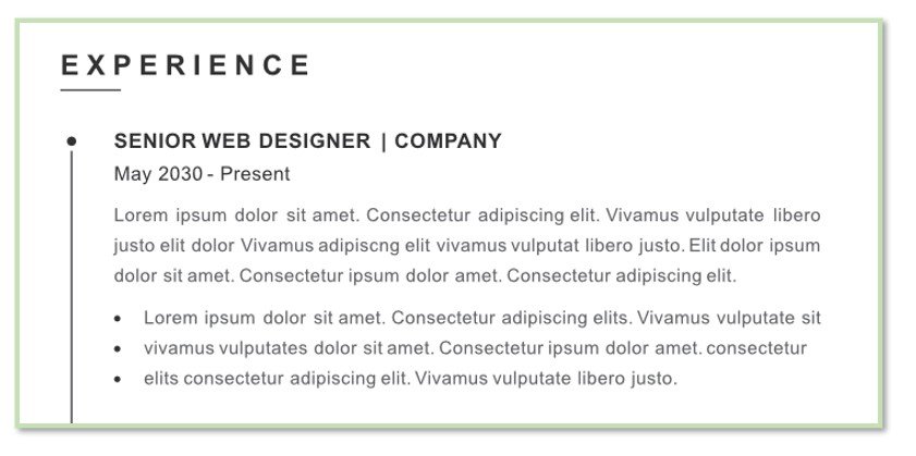 - Incluye las secciones imprescindibles. Es decir, resumen del currículum, experiencia laboral, educación y habilidades.